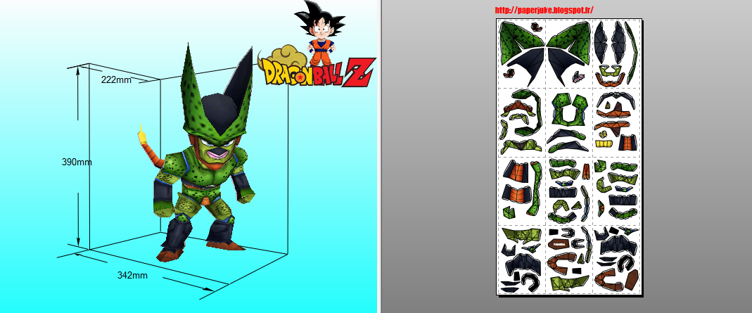 Dragon Ball - Cell Form 2 Chibi papercraft is designed by Paperjuke with 12 pages and 74 parts, the model depicts him with his second evolution, increasing strength and speed, the main color of the model is blue leaves